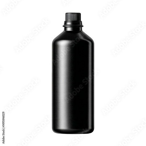 plastic bottle, container, dark, black, matte, glossy, cylindrical, shape, simple, minimalist, clean, modern, elegant, luxury, branding, template, advertisement, studio shot, isolated, background, white background, object, texture, smooth, cap, lid