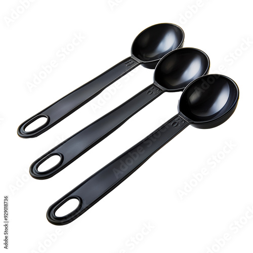 Black Plastic Measuring Spoons Isolated on Transparent or White Background, PNG