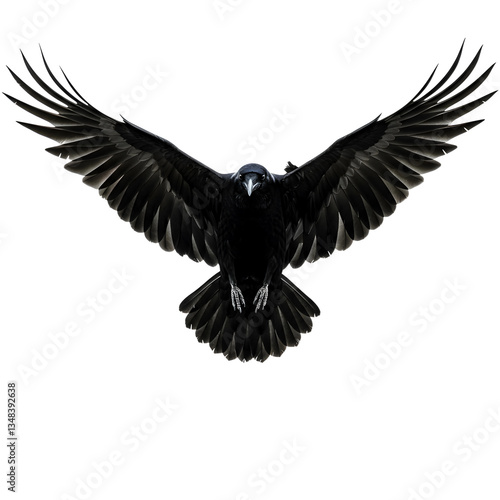Black Raven Flying with Outstretched Wings on Transparent Background