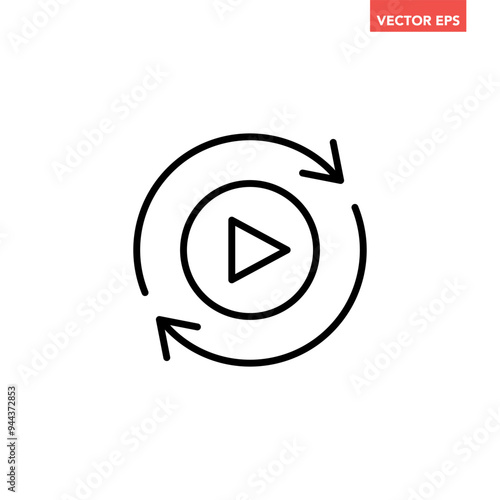 Black replay line icon, simple movie play, playback, refresh, repeat, restart flat design pictogram vector for app logo ads web webpage ui ux interface elements isolated on white background