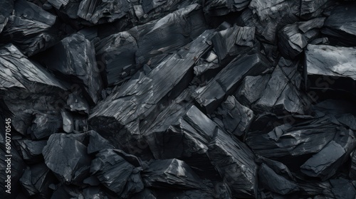 Black rock texture background. Rough mountain surface with cracks. Black stone background with space for design