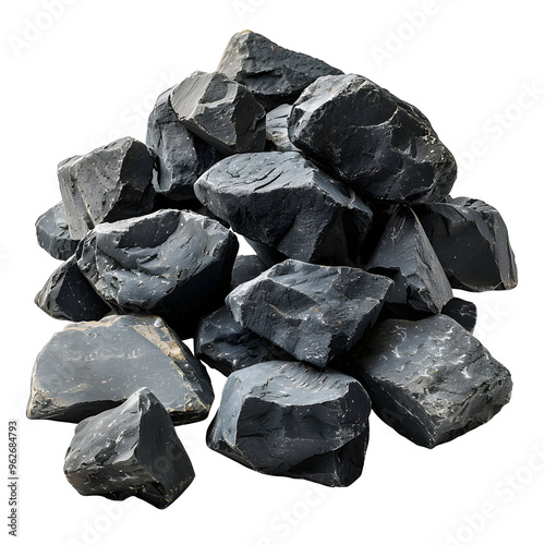 Black rocks stones pile bottom ground cutout transparent background