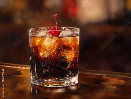 Black Russian, closeup, dark layers, elegant presentation, sophisticated cocktail, artistic style