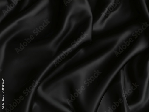 Black satin fabric with soft folds and smooth texture creating a luxurious background.