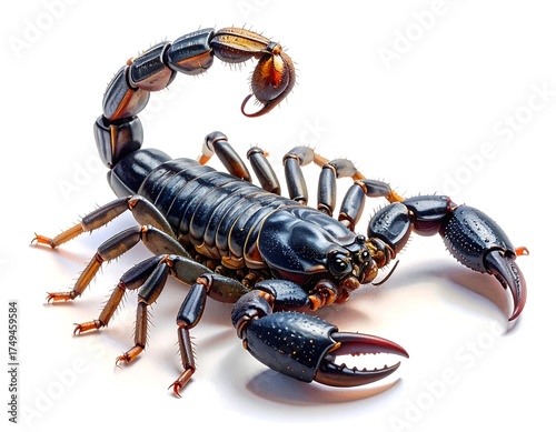 scorpio, black, arachnid, venomous, invertebrate, dangerous, animal, wildlife, nature, closeup, segmented, exotic, posture, detail, sharp, claw, stinger, insect, joint, leg, body, photo, isolated