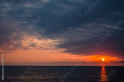 sunset, sea, sky, sun, water, ocean, sunrise, cloud, cloud, beach, nature, orange, horizon, landscape, evening, beautiful, blue, light, dusk, beauty, sunlight, seascape, summer