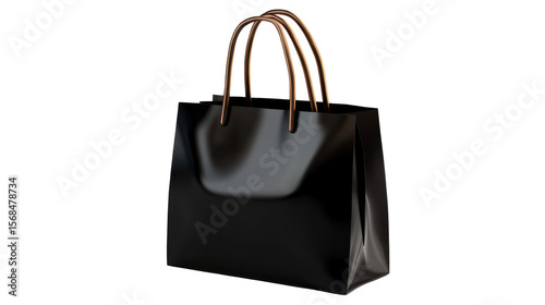 Black shopping bag 3D render icon isolated on white background