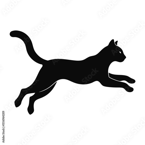 cat, silhouette, black, animal, felino, leaping, jumping, running, motion, graceful, elegant, athletic, dynamic, action, pet, domestic, wild, predator, hunting, playful, isolated, white background, vector, graphic, icon, design, illustration, creature, mammal, energy, speed, agility, pounce, stretch