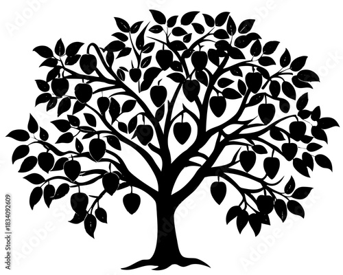 tree, silhouette, fruit, apple, black, and, white, nature, organic, food, fruit farm, growth, tree branch, leaf, plant, illustration, garden, harvest, ripe, seasonal, botany, foliage, art, vector, drawing, icon, symbol