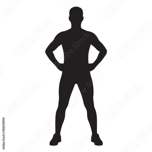 man, silhouette, black, standing, white background, confident, strong, figure, shape, symbol, male, simple, hand, hip, against, plain, white, background, front, apart, elbow, bent, facial, detail, style, colours, pattern, visual, creative, media, motion, movement, cinematic