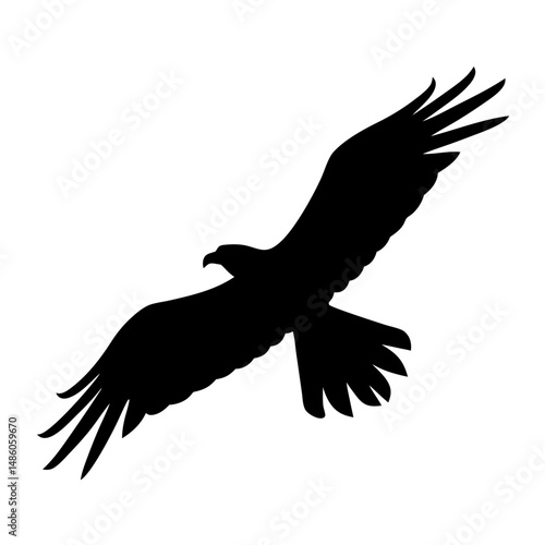 Black Silhouette of an Eagle Soaring High Above, Wings Fully Extended