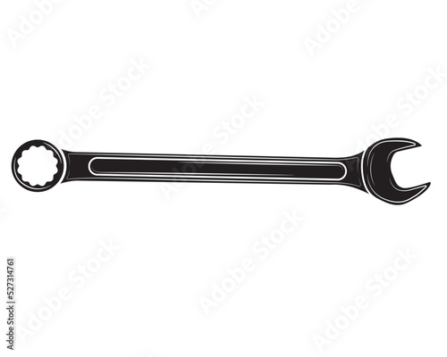 Black silhouette of Metal wrench isolated on white background white background. Repair tool. Vector illustration