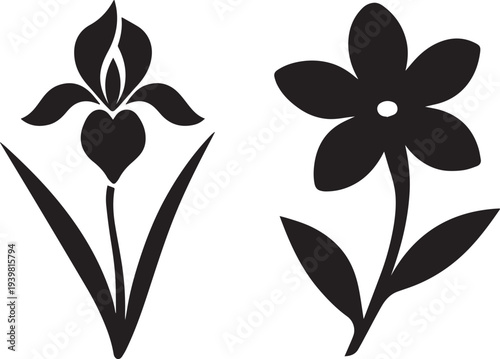 Black silhouette of two flowers on white background