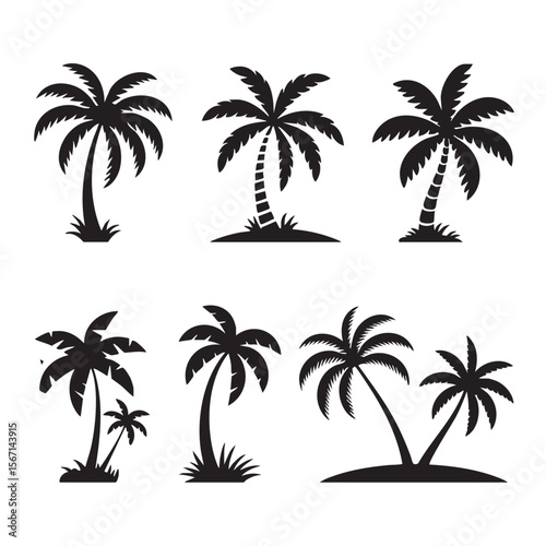 palm tree, silhouette, vector, tropical, beach, island, coconut palm, summer, nature, plant, design, illustration, vacation, paradise, holiday, travel, exotic, symbol, icon, graphic, isolated, black, white, background, sea, sun, landscape, coastline, foliage, leaf, trunk, caribbean, hawaii, jungle, oasis, tropical island, minimalist, simple, monochrome, pattern, template