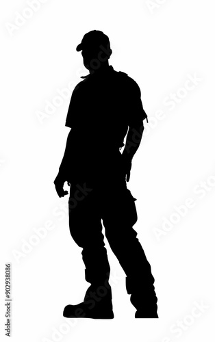 Black silhouette vector image of a construction worker standing with tools and wearing a hard hat, emphasizing readiness and professionalism in a clean and simple outline design