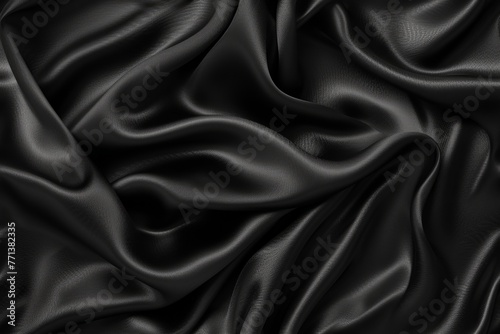 Black silk fabric with waves. The fabric is smooth and shiny.