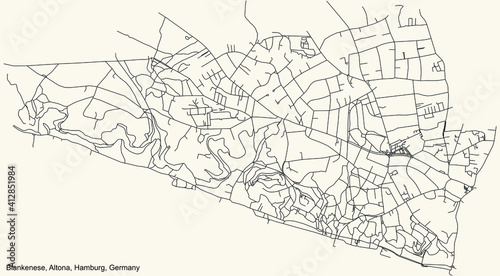 Black simple detailed street roads map on vintage beige background of the neighbourhood Blankenese quarter of the Altona borough (bezirk) of the Free and Hanseatic City of Hamburg, Germany