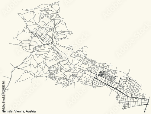 Black simple detailed street roads map on vintage beige background of the neighbourhood Hernals district of Vienna, Austria