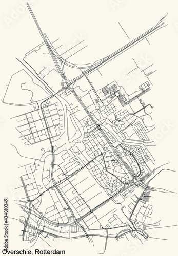 Black simple detailed street roads map on vintage beige background of the Overschie quarter district of Rotterdam, Netherlands