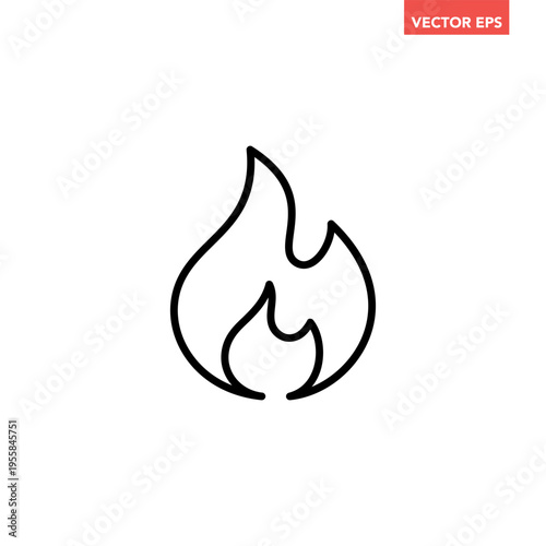 Black single fire flame line icon. Simple burning graphic flat design pictogram vector for app web button banner ui interface elements isolated on white background
