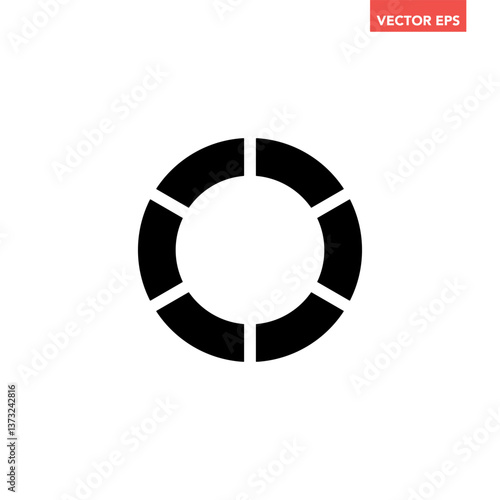 Black single separate doughnut graph pie charts icon with 6 colourful parts. Morden flat design vector illustration circular diagram infographic for web banner logo button app ui ux isolated on white