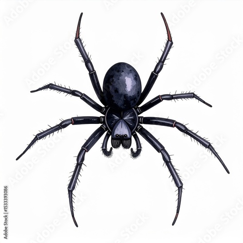 spider, arachnid, insect, animal, nature, wildlife, creepy, crawly, 8, leg, black, dark, close, up, macro, detailed, photo, entomology, invertebrate, small, creature, isolated, white, background, studio, shot, top, view, overhead, biological, scientific, illustration, drawing, art, graphic, design, web, body, head, eye, texture, pattern, red, sharp, zoology