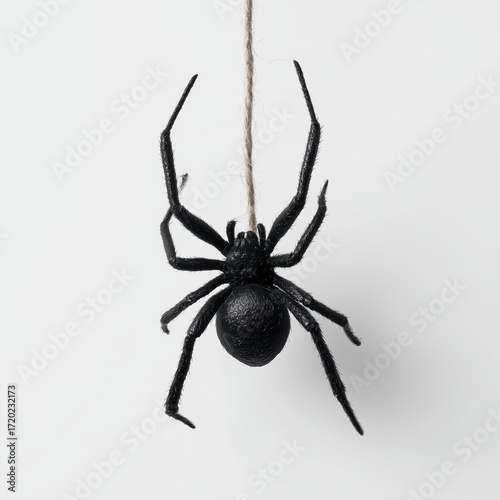 Black Spider Hanging on String - Close-Up Nature Detail , PNG isolated cut out image