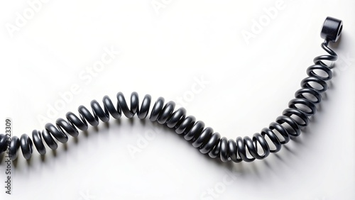 Black spiral telephone cord isolated on white background, telephone, white background, connection, technology, telecommunication, telecommunications, black, isolated, spiral, flexible