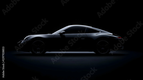 car, vehicle, automobile, transportation, luxury, sports car, black, silhouette, dark, studio shot, speed, modern, sleek, design, automotive, half face, shadow, headlamp, wheel, tyre, performance, coupe, abstract, elegant, power, motion, fast, race, driving, technology, style, innovation, engineering, chrome, glossy, surface, detail, light, background, isolated, expensive, curve, shape, velocity, road, night, evening