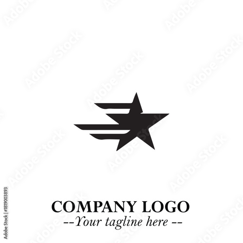 Black Star Moving Fast Logo Symbol in Dynamic Minimal Vector Style on Clean White Background