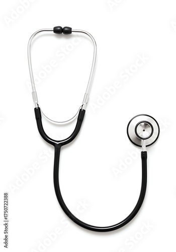 stethoscope, medicals, health care, doctor, nurse, diagnostic, listening, cardiology, black, silver, metal, plastic, white background, isolated, equipment, tool, professional, exam, health, wellness, clinical, auscultation, medicine
