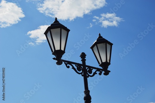 electricity, sky, vintage, black, city, light, urban, street light, lantern, blue, illumination, cloud, lamp, glasses, style, lamp-post, antique, electric, decorative, street light, old, metal, street, 2, retro, design, object, illuminated, power, classic, travel, bird, decoration, candle, environmental, background, post, outdoors, old-fashioned, town, european, romantic, beautiful, park, energy, aged, bulb, detail