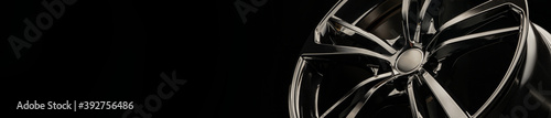 black stylish rim alloy wheel on a dark background. close-up, layout for the design of car sites, copyspace