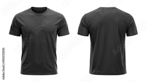 black t shirt round neck front and back side template isolated on transparent white background, clipping path
