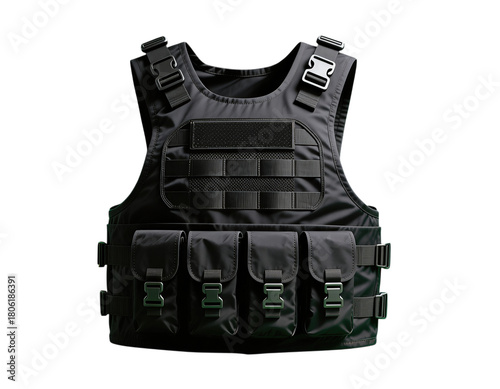 Black Tactical Vest with Pouches and Adjustable Straps