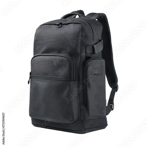 Black textured backpack isolated on transparent background for everyday use