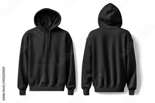 Black tracksuit hoodie front and back view on white background