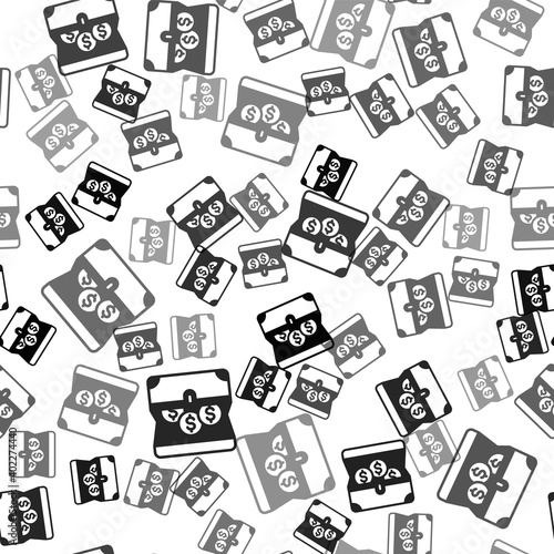Black Treasure chest icon isolated seamless pattern on white background. Vector.