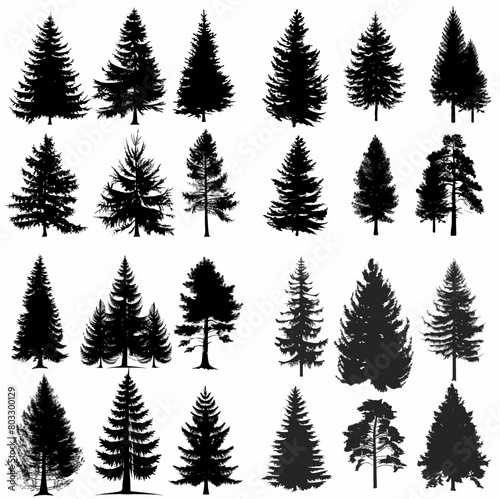 black tree silhouette set pure badge eco outline recreation breath emblem label protection graphic pine trunk woodland