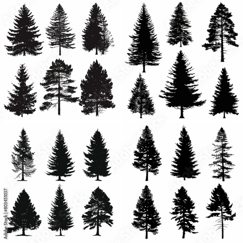 black tree silhouette set pure badge eco outline recreation breath emblem label protection graphic pine trunk woodland