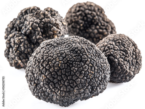 Black truffles isolated on a white background.