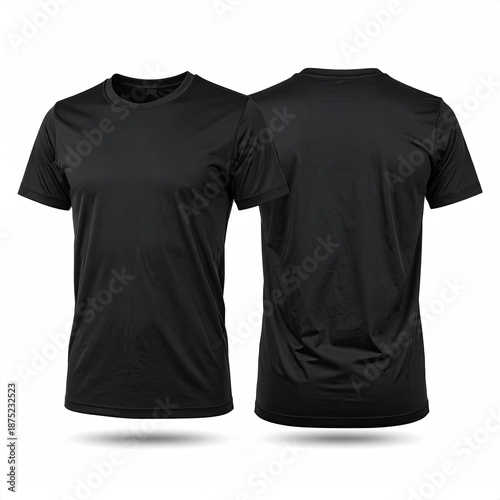 apparel, tee, black, shirt, clothing, texture, fabric, cotton, polyester, soft, smooth, simple, design, basic, everyday, casual attire, wear, style, fashion, garment, blank, template, isolated, solid, plain, front, back, view, unisex, round, neck, sleeve, light, shadow, detail, closeup, studio, image, product
