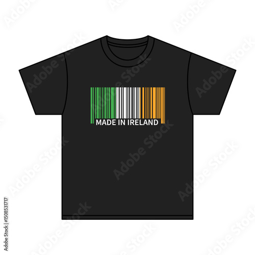 Black t-shirt Made In Ireland with flag barcode