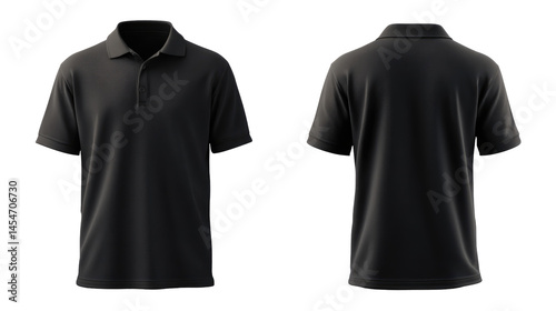 Black T-Shirt with Round Neck – Front and Back View on transparent background
