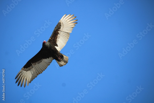 Black Turkey Vulture in a blue sky