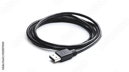 Black usb cable isolated on white background.