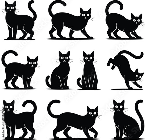 cat, black, silhouette, vector, illustration, animal, collection, felino, icon, graphic, design, artwork, kitten, pet, symbol, logotype, drawing, skittish, halloween, dark, shadow, isolated, elegance, minimalist, mystical, abstract, creative, cute, domestic, vignetting, simple, artistic, beauty, print, web, typography, modern, concept, pattern, comic, cartoon, happy, character, element, style, digital, white, background