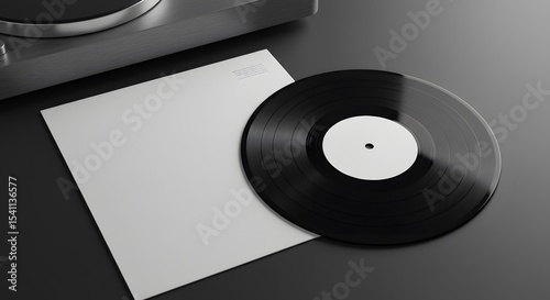 Black Vinyl Record Album with Blank White Cover Mockup and Turntable