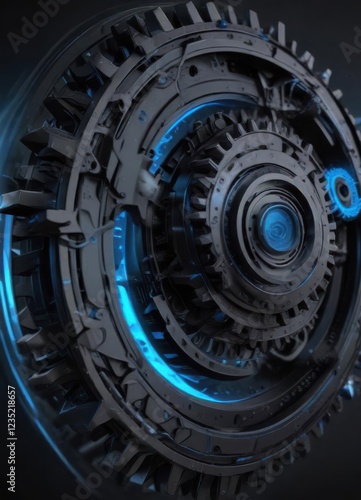 Black web design concept with blue lines and gears, gear, blue