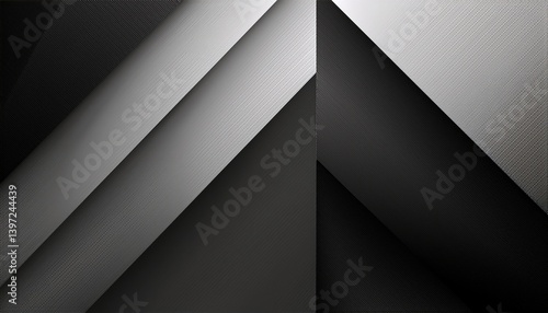 Black white dark gray silver modern abstract background. Geometric shape. Line stripe corner 3d shadow. Gradient. Metal metallic.